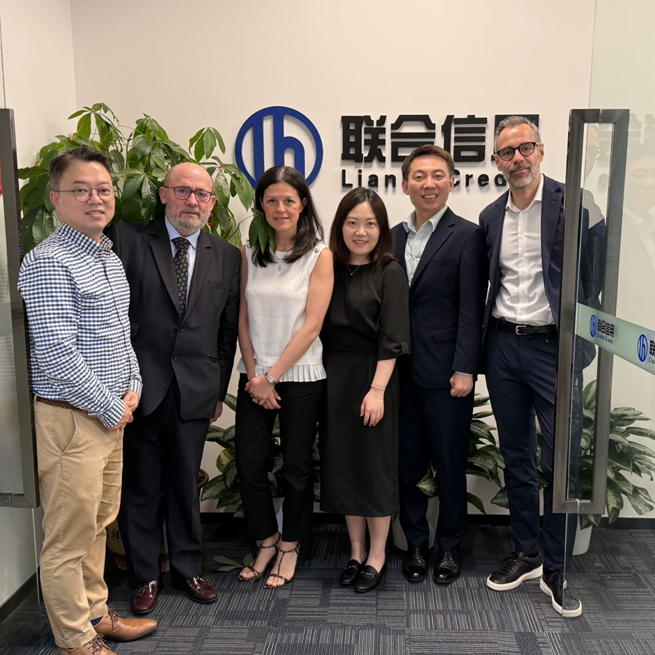 2025年4月24日,深圳 —— 欧洲财务分析师联合会(EFFAS)主席Lopez先生、培训与资格认证总监Valeria博士、ESG委员会成员Rene博士及亚洲地区代表Anthony一行,莅临联合信用位于深圳卓越世纪中心的总部,与联合绿色发展有限公司董事总经理Polex先生及高级总监Melody女士进行深入交流。