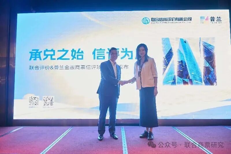 2025年9月12日,联合评价重要合作伙伴上海普兰金融服务有限公司(以下简称“普兰公司”)于上海浦东成功举办“商票融通・银企共赢—数字化时代商票应用”高端论坛,联合评价作为论坛受邀嘉宾发表了主旨演讲,论坛期间,双共同启动了“核心企业商票评级项目”。